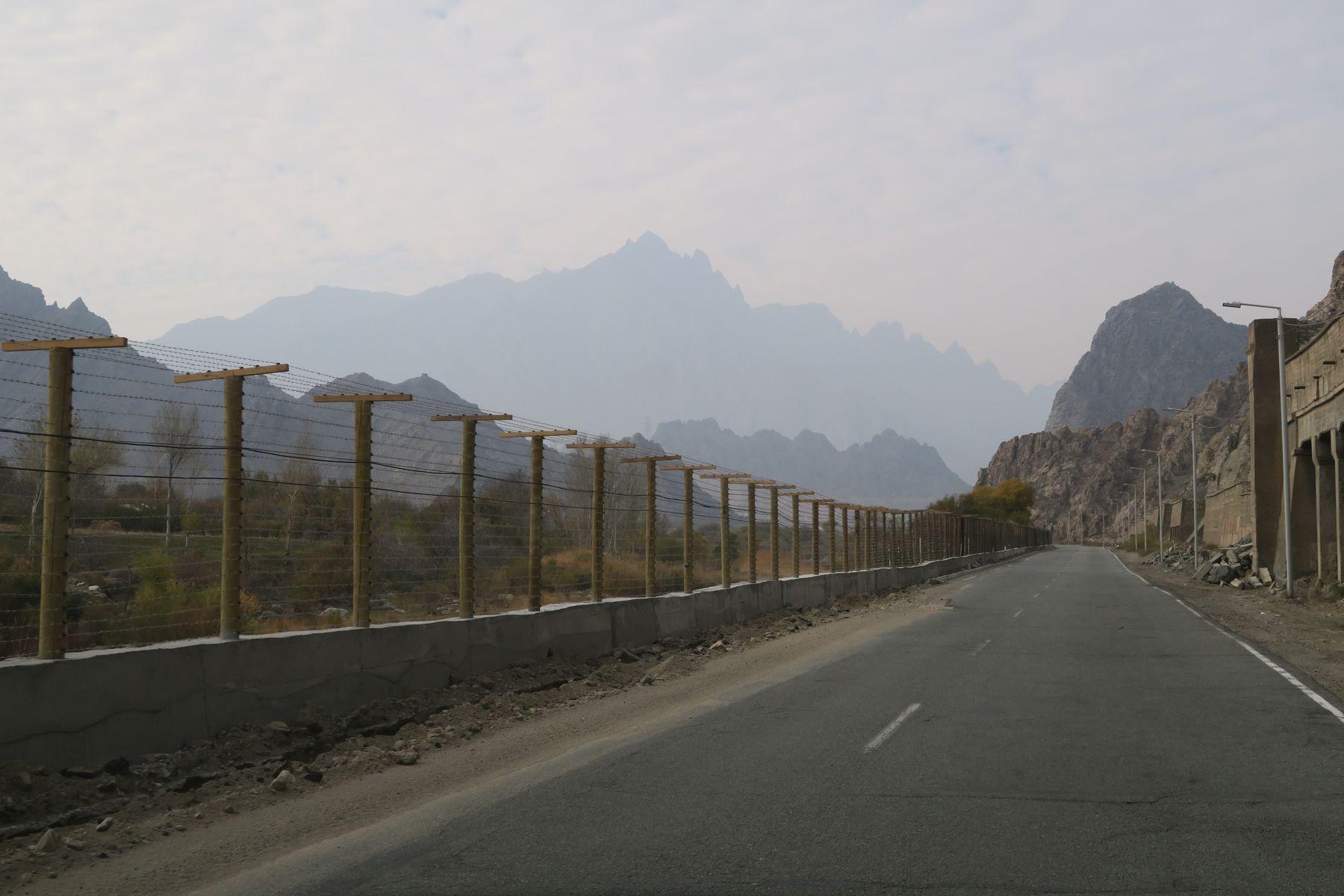 Dann bin ich bereit und fahre los. Am Ortsende prangt neben der Straße ein hoher und dichter Stacheldrahtzaun, gleich dahinter fließt ein Fluss. Auf der anderen Seite ist schon Iran.