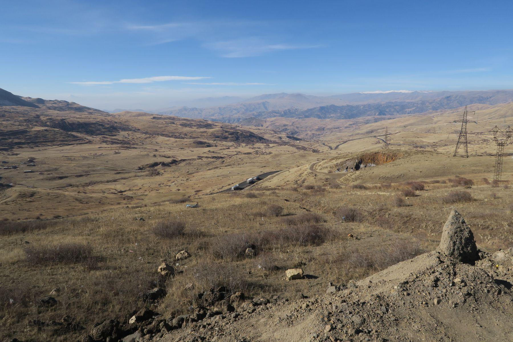 Ich bleibe aber nie lang stehen, die Grenzstadt Meghri möchte ich noch vor Sonnenuntergang erreichen. In bester armenischer Fahrweise überhole ich die zahlreichen Lkws , die sich im Schneckentempo die Pässe rauf quälen. Ich bin froh einem Mercedes AMG folgen zu können, der die Strecke offenbar kennt und weiß, wo es Überholmöglichkeiten gibt. So schaffe ich es vor Einbruch der Dunkelheit nach Meghri.